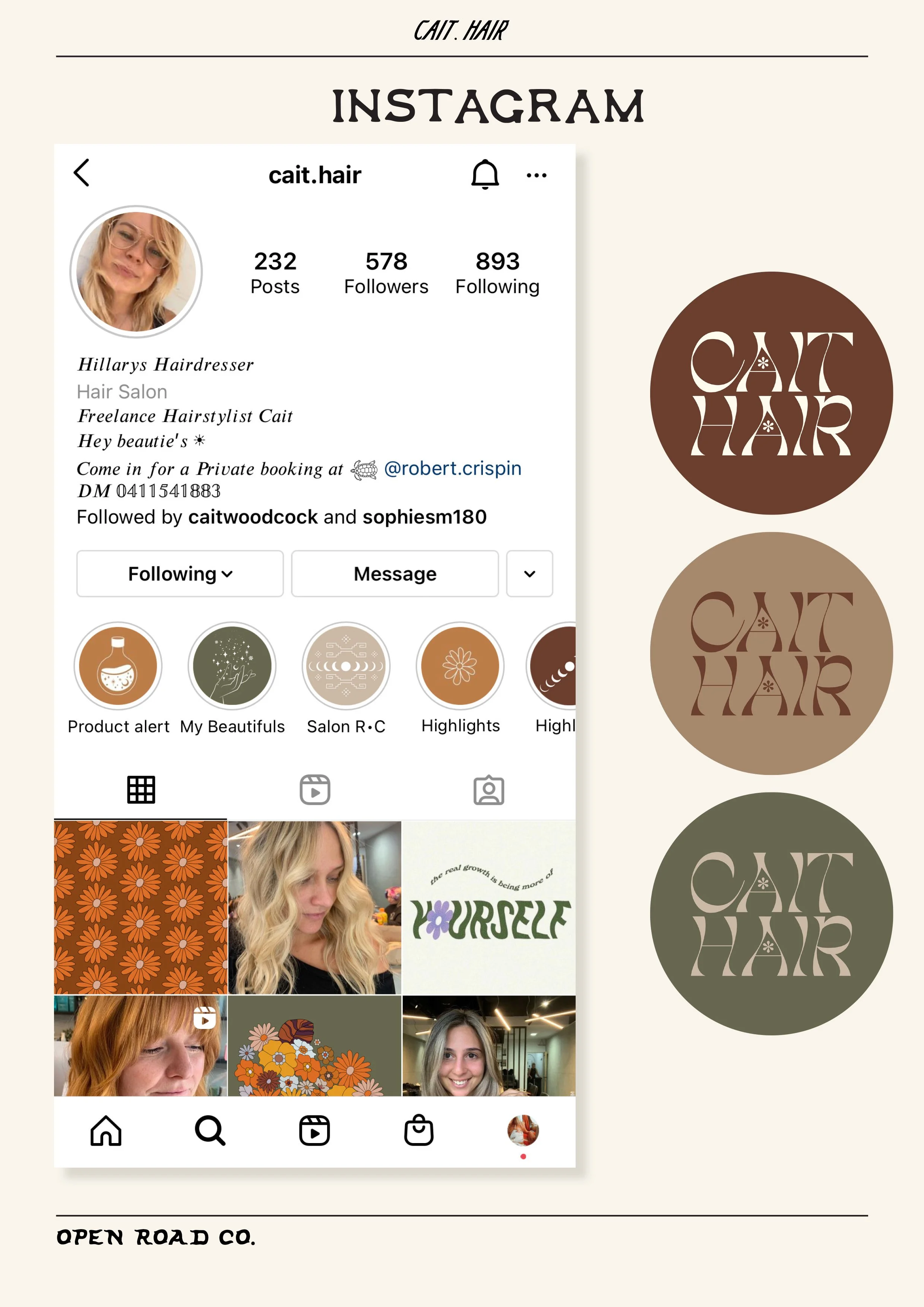 A very funky lady needed funky branding for her incredible freelance hair dressing work ✿ Cait creates beautiful artwork in the form of hair colouring and cuts. Connecting easily with anyone she meets, she uses her talents to allow her clients to express themselves through their hair.